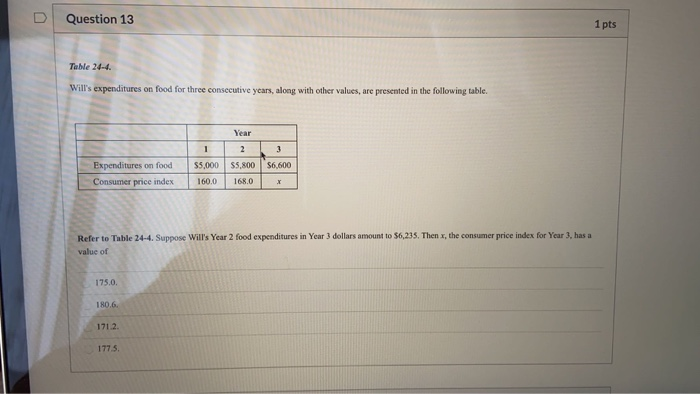 Solved Question 12 1 Pts Table 24 4 Will S Expenditures On Chegg Com